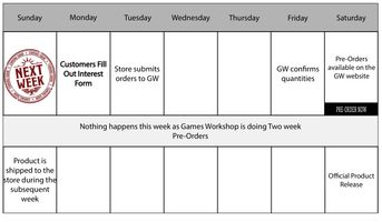 Every Games Workshop pre-order cycle begins with a Sunday Preview article, then proceeds through our stores Interest Form availbility period.